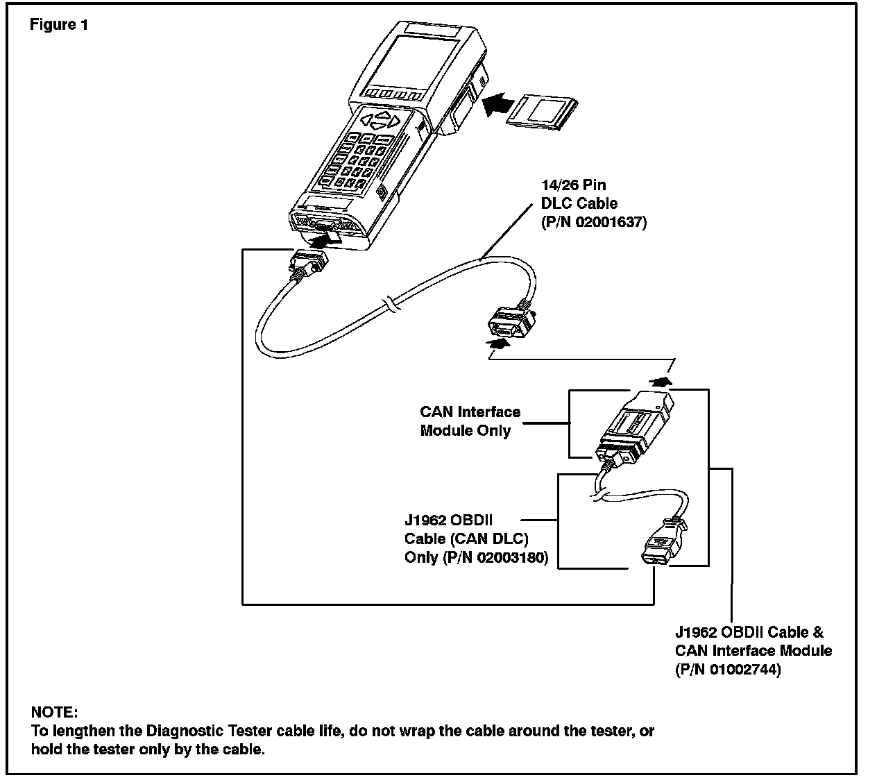 Before performing test, confirm that the Diagnostic Tester, 14/26 Pin DLC Cable, and CAN Interface Module are all securely connected.