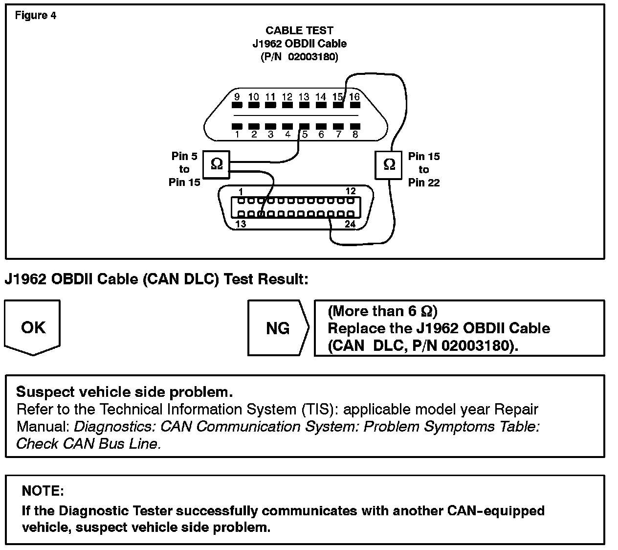 If the Diagnostic Tester fails to initialize CAN-based communication with on-board vehicle controllers, a damaged cable or inoperative CAN Interface Module may be at fault. This bulletin provides test procedures to check the integrity of the Diagnostic Tester cables and the CAN Interface Module.