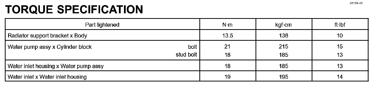 Cooling - Torque Specification: