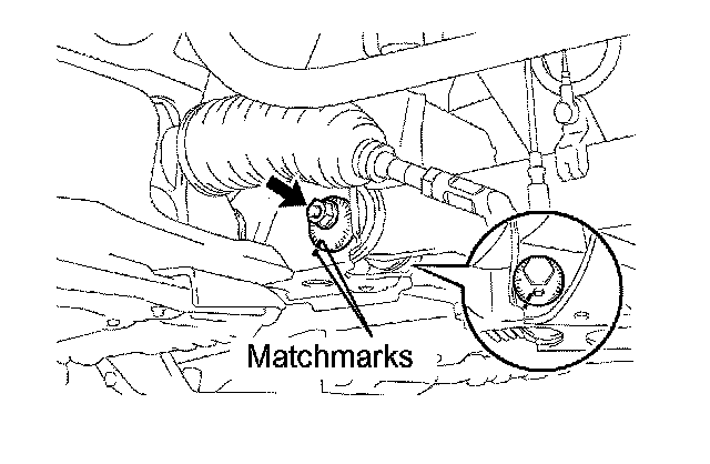 c. Align the matchmarks on the camber adjust cam and suspension member.