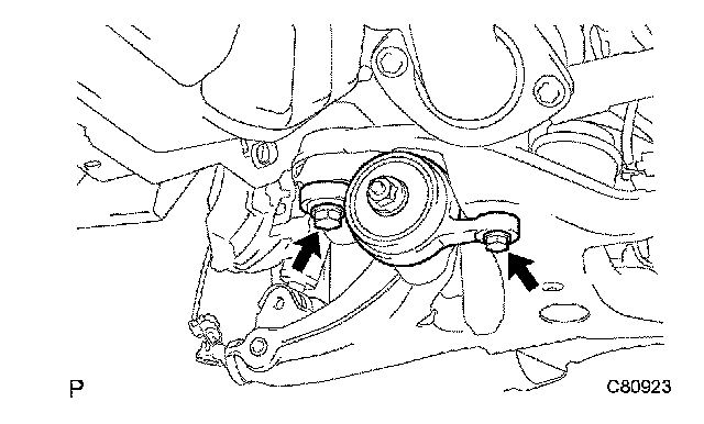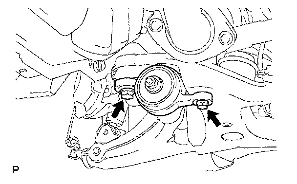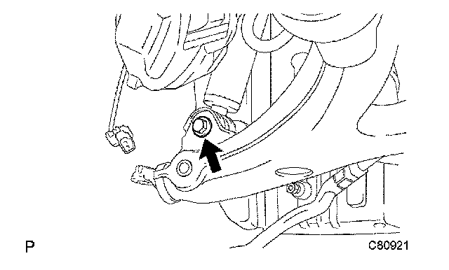 e. Remove the 2 bolts and front suspension lower arm assembly LH.