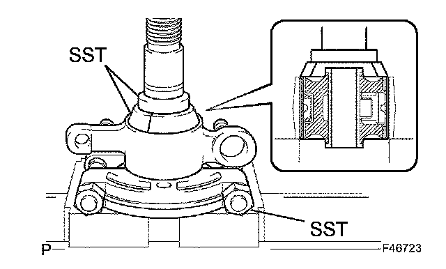 b. Using SST and a press, remove the bushing from the lower arm bracket.