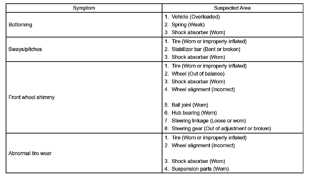 PROBLEM SYMPTOMS TABLE