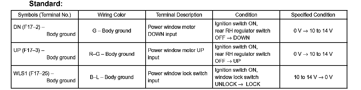 If the result is not as specified, the rear door LH ECU may have a malfunction.