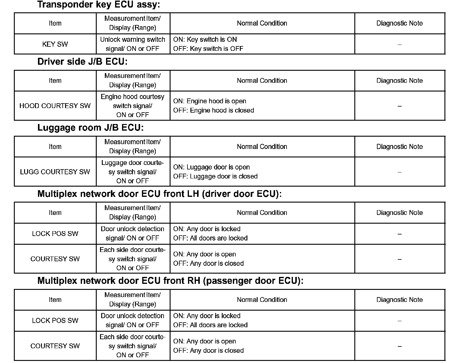 DATA LISTHINT: Using the hand-held tester's DATA LIST allows switch, sensor, actuator and other item values to be read without removing any parts. Reading the DATA LIST early in troubleshooting is one way to save time.