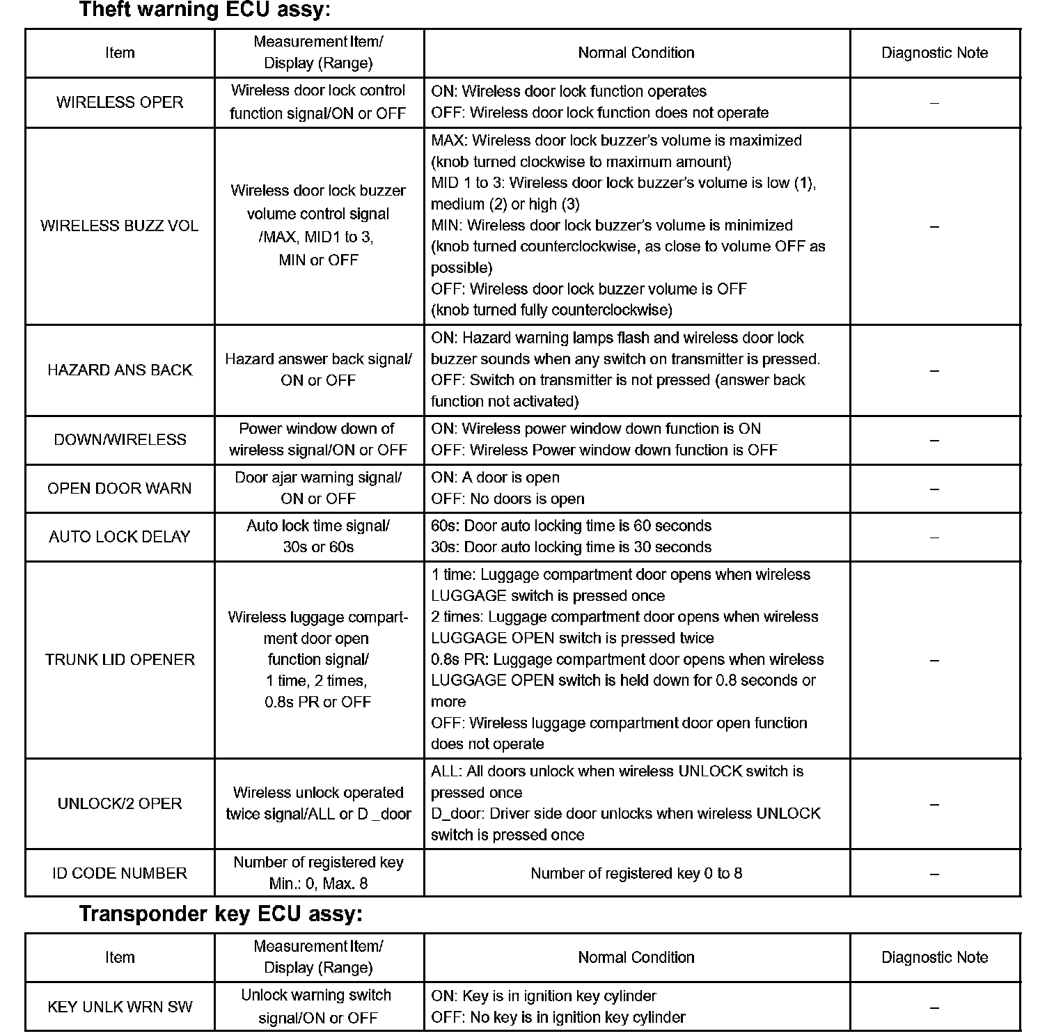 DATA LISTHINT: Using the hand-held tester's DATA LIST allows switch, sensor, actuator and other item values to be read without removing any parts. Reading the DATA LIST early in troubleshooting is one way to save time.