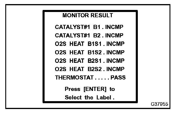 CHECKING MONITOR STATUSNOTE: The Monitor Status is not applicable to the heated oxygen sensor (HO2S). The HO2S status can be checked with O2S TEST RESULT (mode 5)