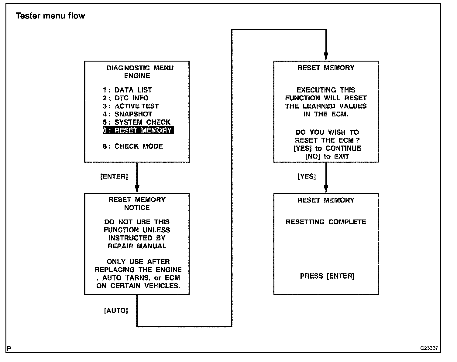 NOTE: After performing the RESET MEMORY procedure, be sure to perform the ROAD TEST
