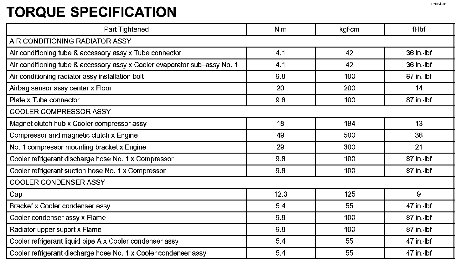 Heater & Air Conditioner - Torque Specification:
