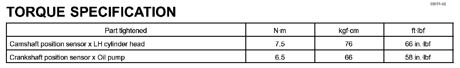 Ignition - Torque Specification: