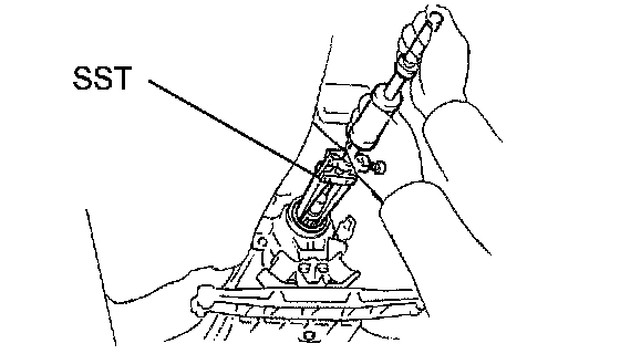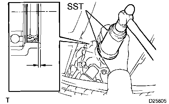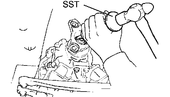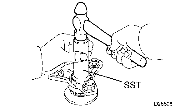 b. Using SST and a hammer, tap in the oil seal with the lip facing downward.