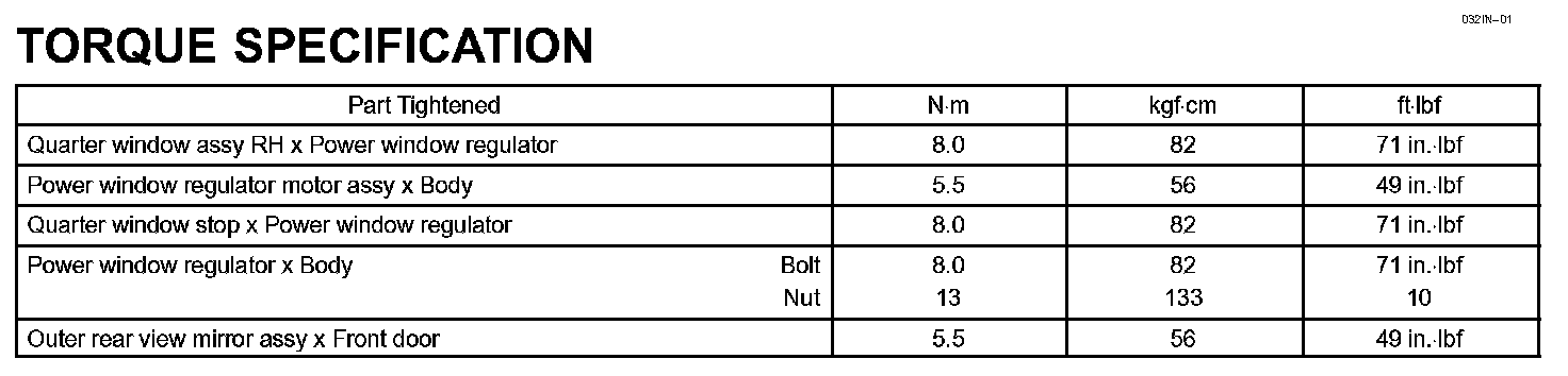 Windshield/Window Glass/Mirror - Torque Specification: