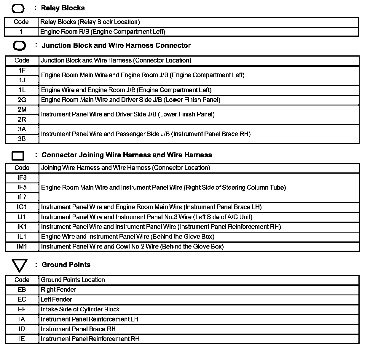 Locations: The locations of components, connectors, ground points, and splices referred to within these diagrams can be found at Vehicle Locations. Locations