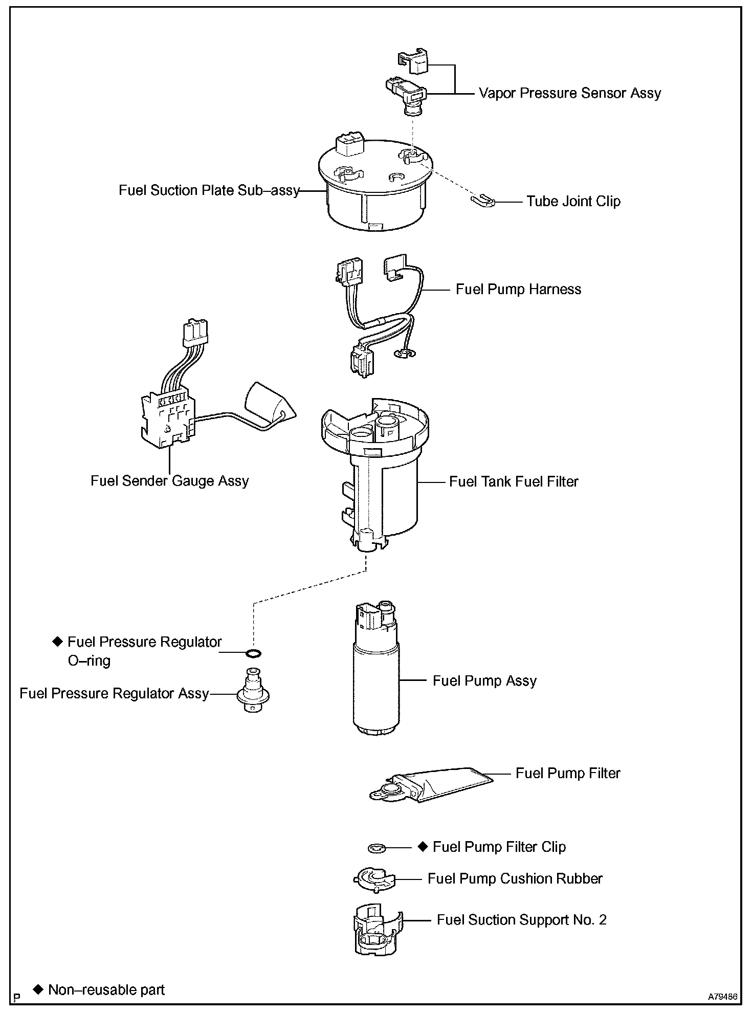 FUEL SUCTION W/PUMP & GAUGE TUBE ASSEMBLY (3MZ-FE) COMPONENTS