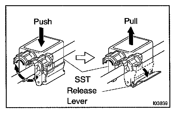 c. Pull SST slightly and push the release lever, then remove the piping clamp with SST.