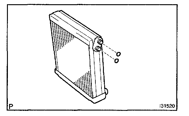 e. Remove the 2 O-rings from the cooler evaporator sub-assembly No.1.