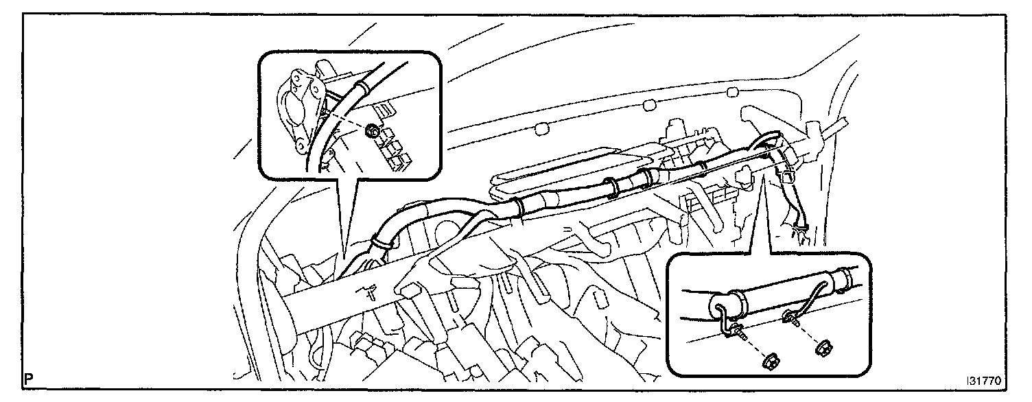 HINT: Confirm the direction of the piping clamp claw and SST using the illustration showing on the caution label.