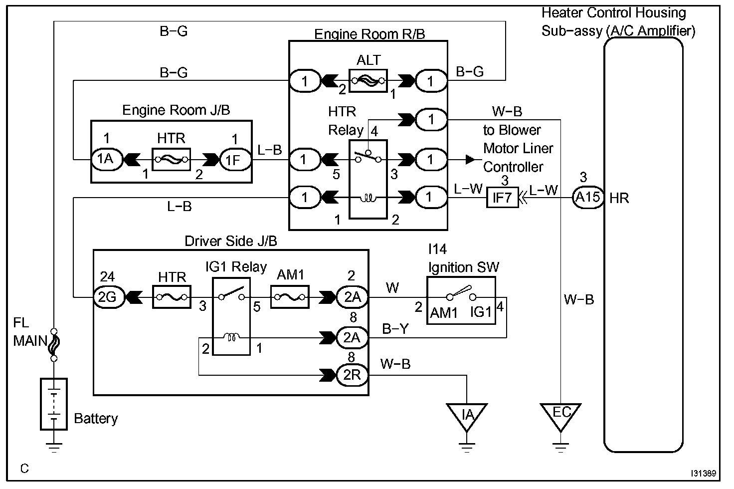 The heater relay is switched on by signals from the A/C amplifier. It supplies power to the