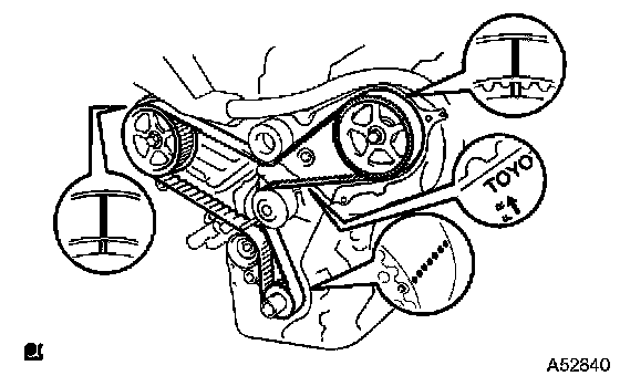 b. If reusing the timing belt, check that there are 3 installation marks on the timing belt as shown in the illustration.