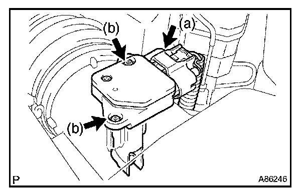 b. Remove the 2 screws, then remove the mass air flow meter.