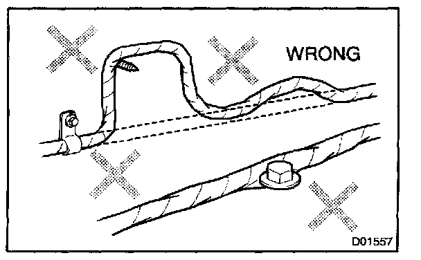 2. Never twist, pull or slack off the wire harness more than necessary.