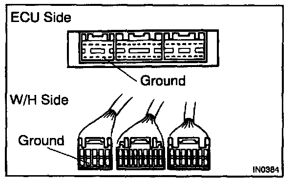 2. Disconnect the ECU connector, check the ground terminals on the ECU side and wire harness side for bend and check the contact pressure.