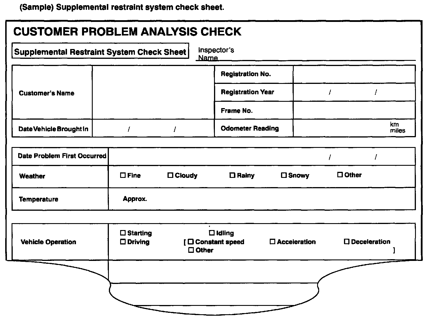 (Sample) Supplemental restraint system check sheet