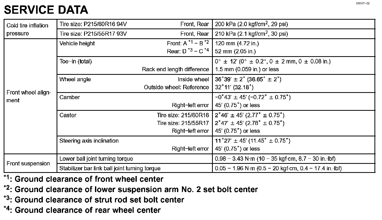 Front Suspension-Service Data: