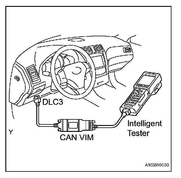 HINT: Connect the cable of the intelligent tester to the DLC3, turn the engine switch on (IG) and attempt to use the tester. If the display indicates that a communication error has occurred, there is a problem either with the vehicle or with the tester.