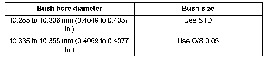 If the bush bore diameter of the cylinder head is greater than 10.306 mm (0.4057 inch), machine the bush bore to the dimension of 10.335 to 10.356 mm (0.4069 to 0.4077 inch) to install a O/S 0.05 valve guide bush. If the bush bore diameter of the cylinder head is greater than 10.356 mm (0.4077 inch), replace the cylinder head.