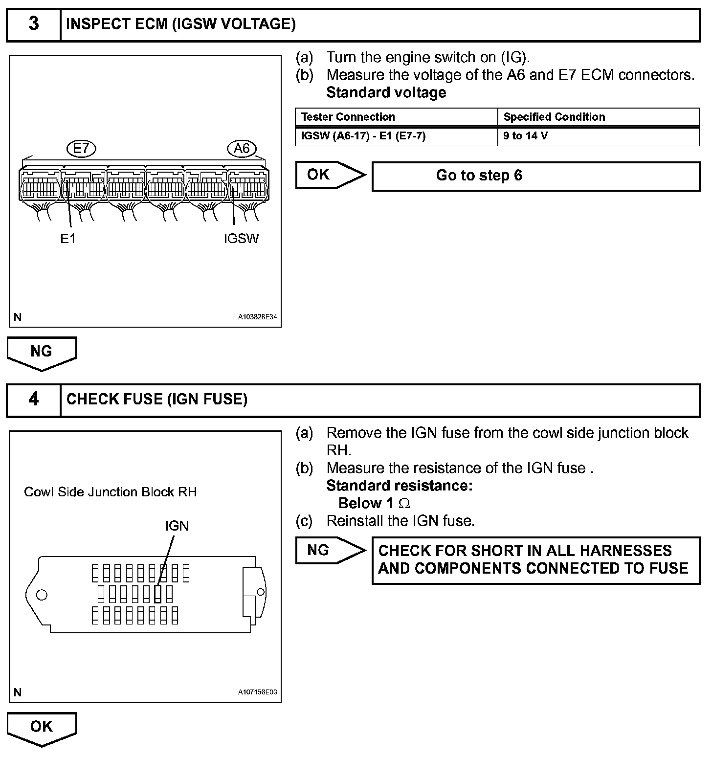 When the engine switch is turned to on, the battery voltage is applied to terminal IGSW of the ECM. The ECM MREL output signal causes a current to flow to the coil, closing the contacts of the EFI MAIN relay and supplying power to terminal +B of the ECM.