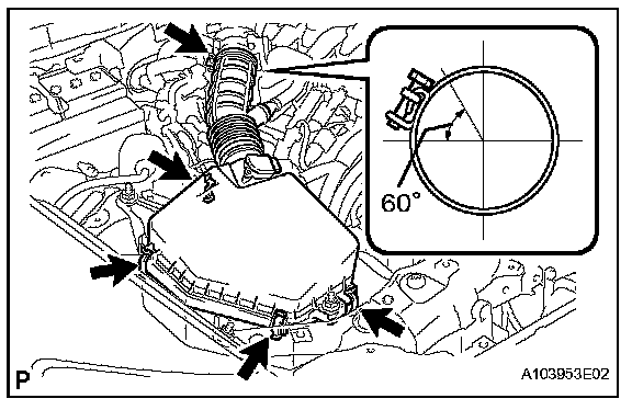 HINT: Be sure to install the air cleaner assembly so that the screw part of the hose clamp is as shown in the illustration.