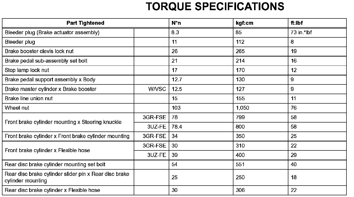 Brake-Torque Specifications: