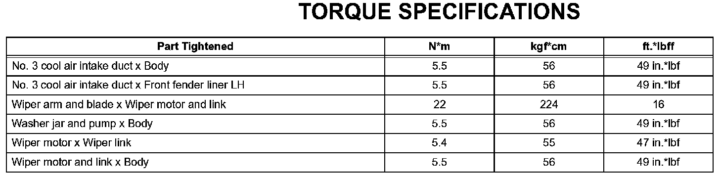 Wiper And Washer-Torque Specifications: