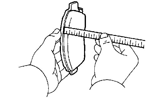 Using a ruler, measure the pad lining thickness.