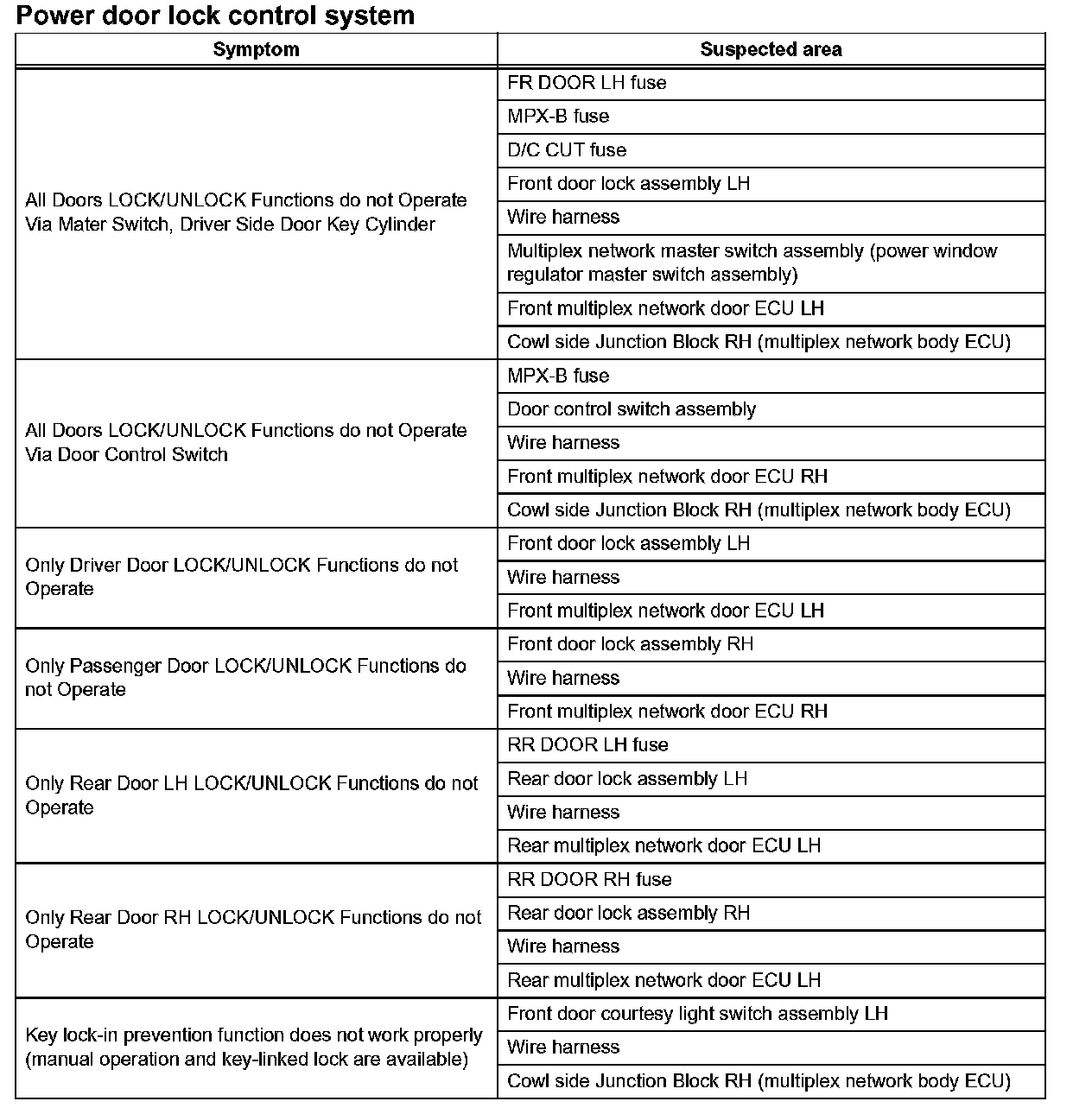 PROBLEM SYMPTOMS TABLEProblem Symptoms Table - Power Door Lock Control System: