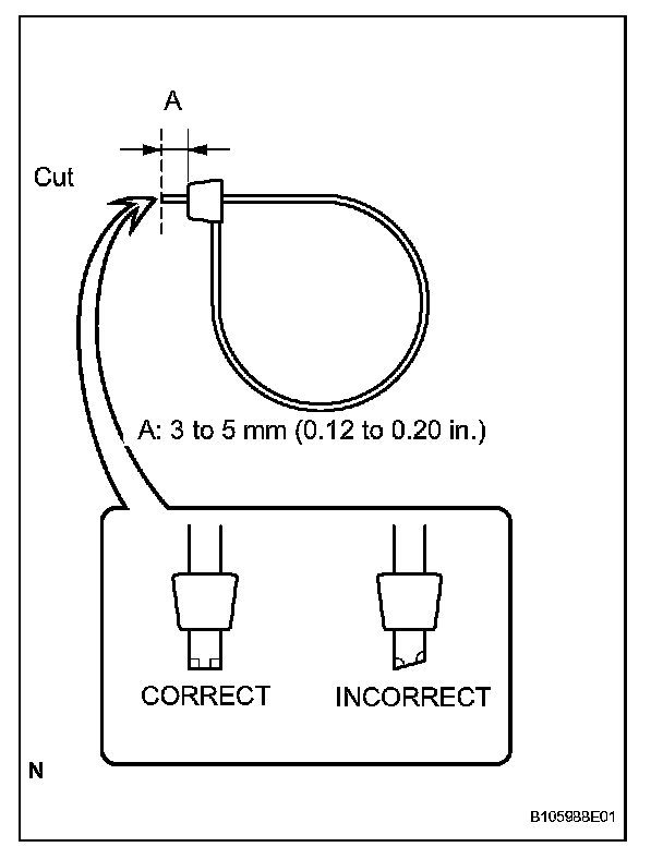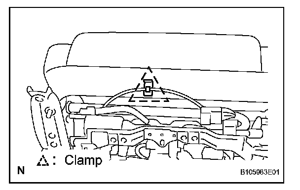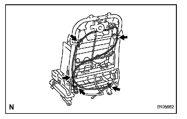 e. Clamp the cable to the front seat frame with the cable tie as shown in the illustration.