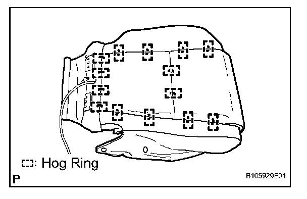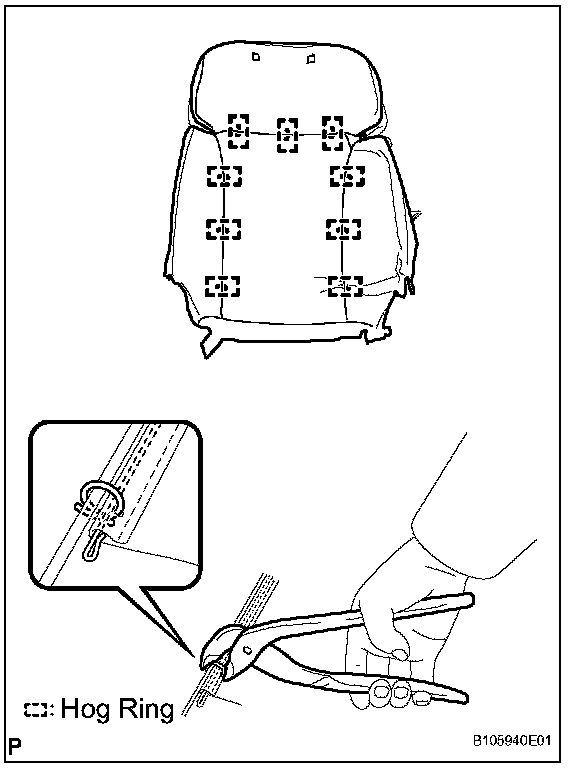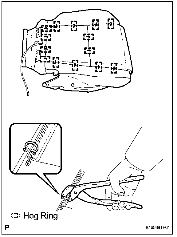 a. Using hog ring pliers, install the seat cushion cover to the seat cushion pad with new hog rings.