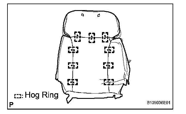 a. Using hog ring pliers, install the seatback cover to the seatback pad with new hog rings.