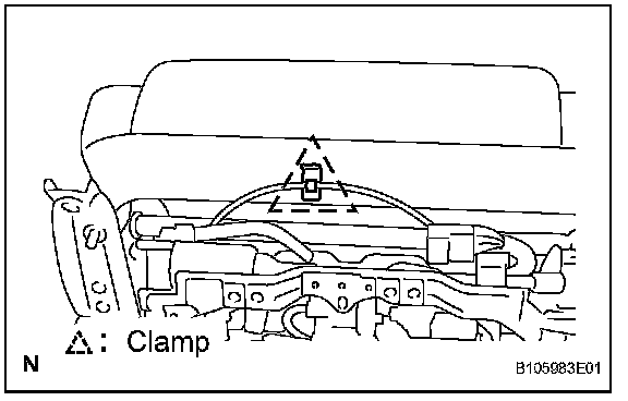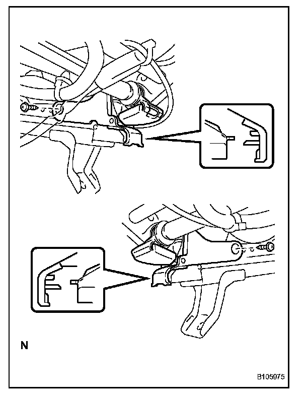 c. Attach the clamp of the headrest adjuster's cable (driver side).