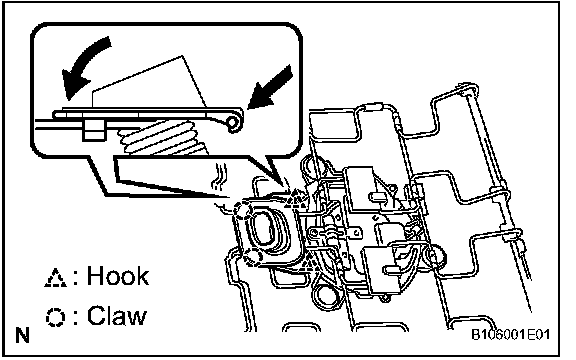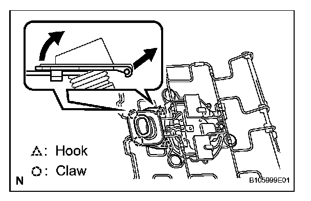 a. Detach the 2 hooks and 2 claws and remove the duct.