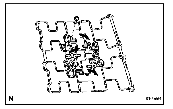 d. Detach the claw and remove the cushion shield (with No. 1 cushion shield inner) in the order indicated in the illustration.
