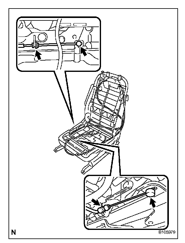b. Disconnect the cable from the front seat frame under side.