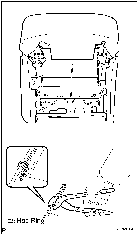 c. Remove the hog rings and open the upper part of the seatback cover.