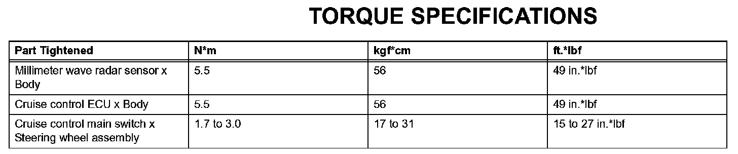 Cruise Control-Torque Specifications:
