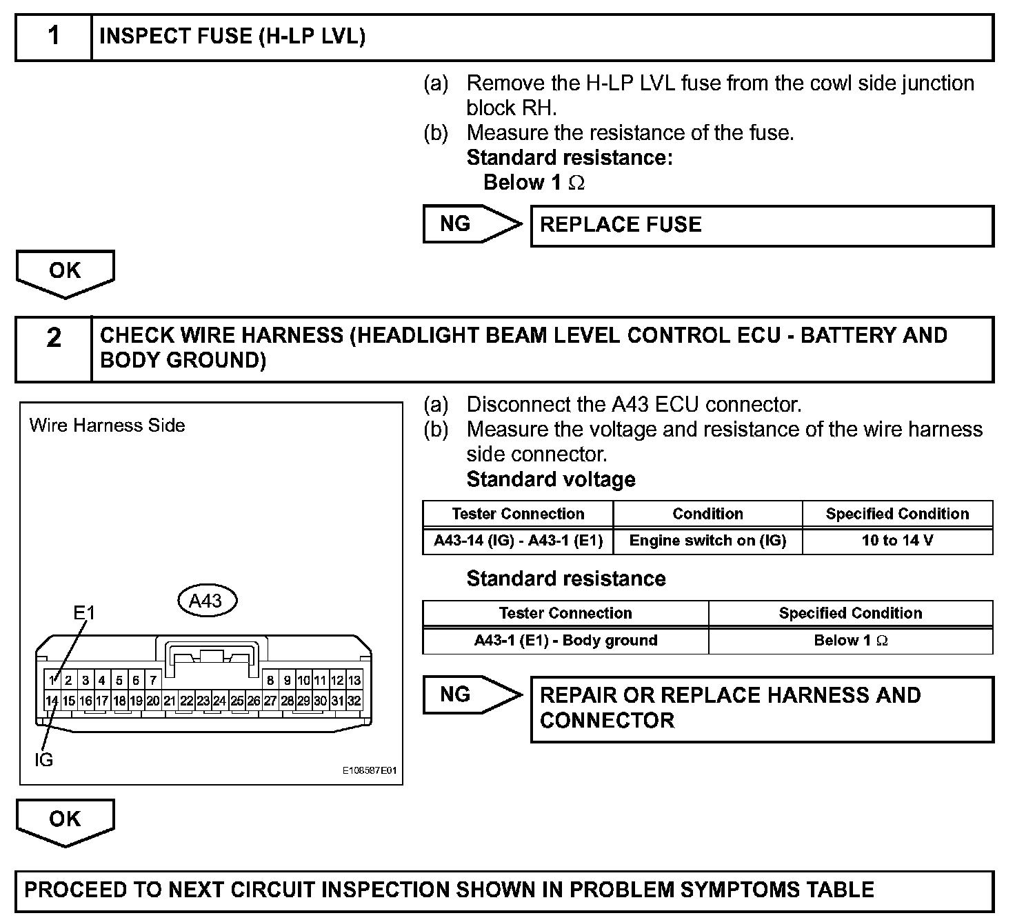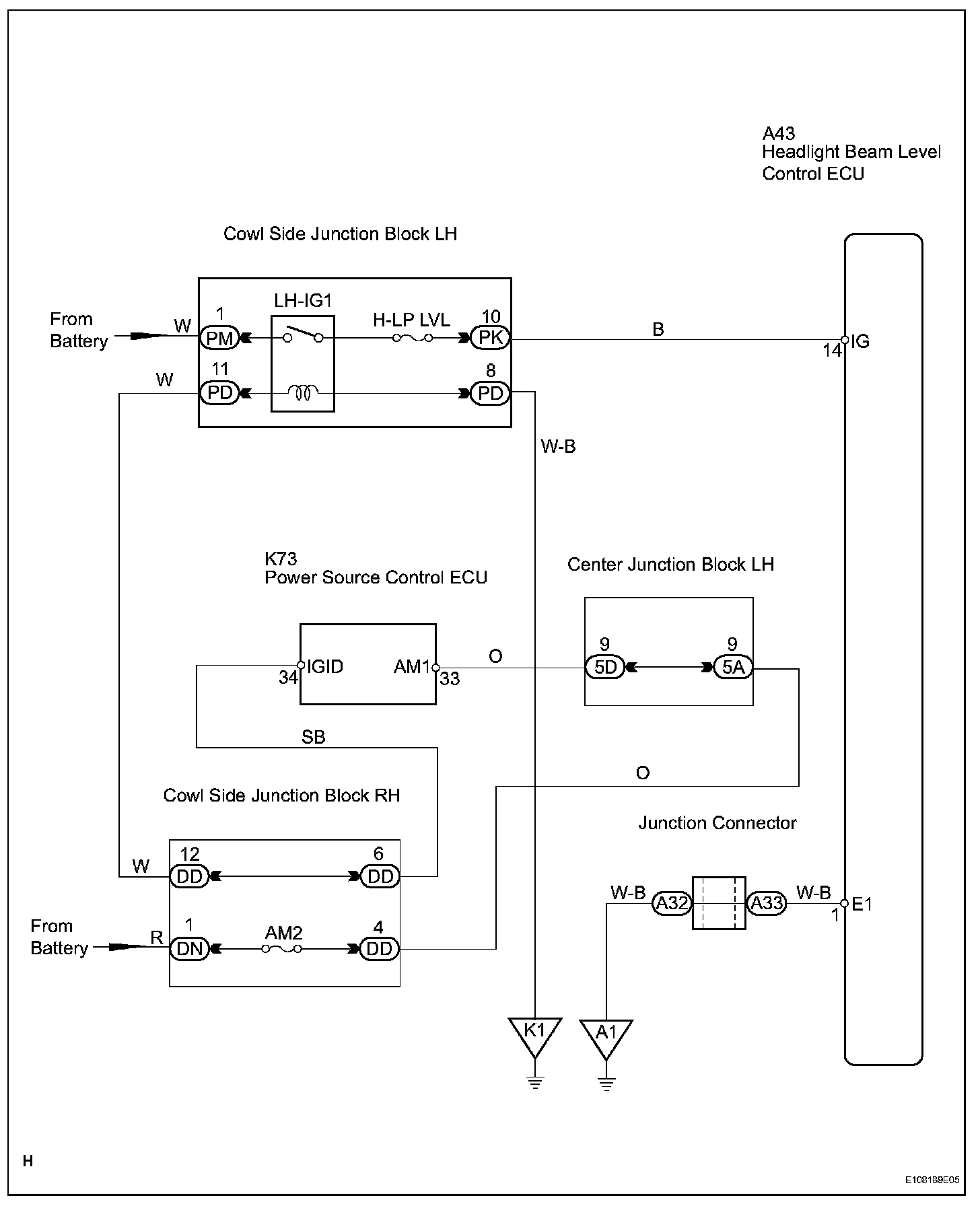 Headlight Beam Level Control ECU Power Source CircuitDESCRIPTION