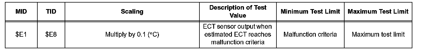 The test value and test limit information are described as shown in the following table. This information is included under "MONITOR RESULT" in the emissions-related DTC sections: