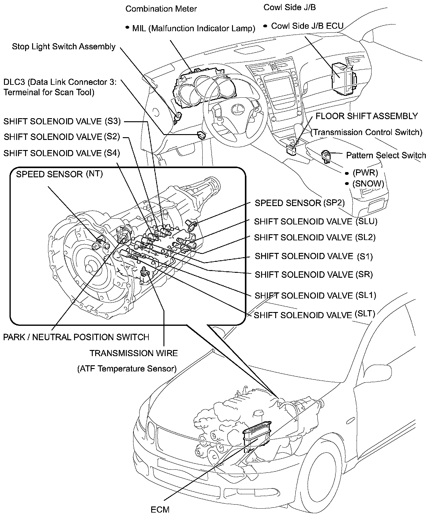 A761E AUTOMATIC TRANSMISSION PARTS LOCATION: