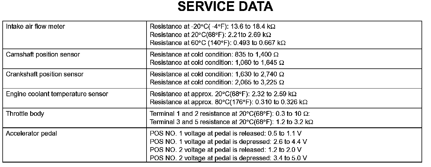 Engine Control System-Service Data:
