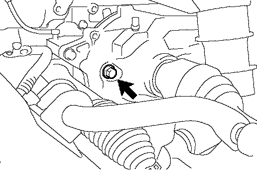 b. Using a hexagon wrench (10 mm), remove the differential filler plug and gasket.